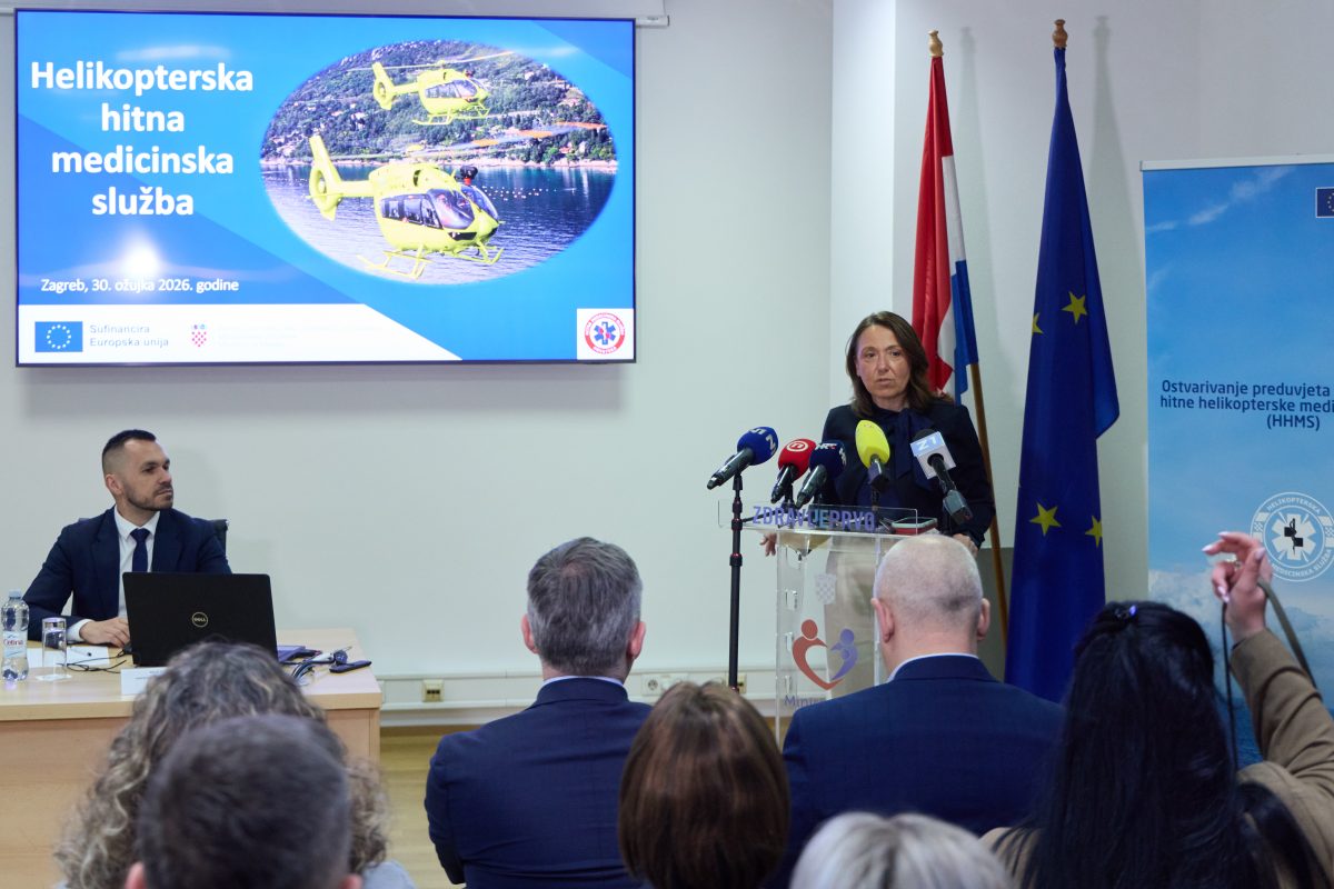 Konferencija za medije na kojoj je predstavljen paket mjera za unaprjeđenje primarne zdravstvene zaštite. Na video snimci govore Irena Hrstić i Zvonimir-Ante Korda. Video Hina/Dario GRZELJ